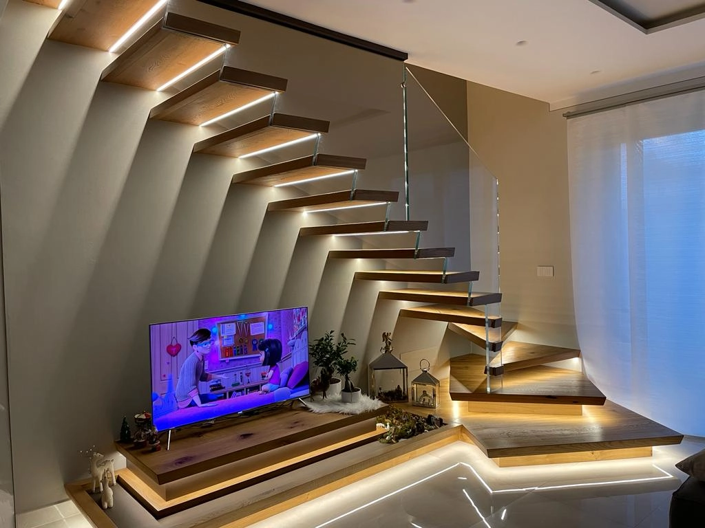 3. Adattabilità agli spazi: i gradini a sbalzo sono la soluzione ideale per spazi interni che si integrano perfettamente in ambienti di qualsiasi dimensione, trasformando pareti portanti in veri e propri elementi di design.