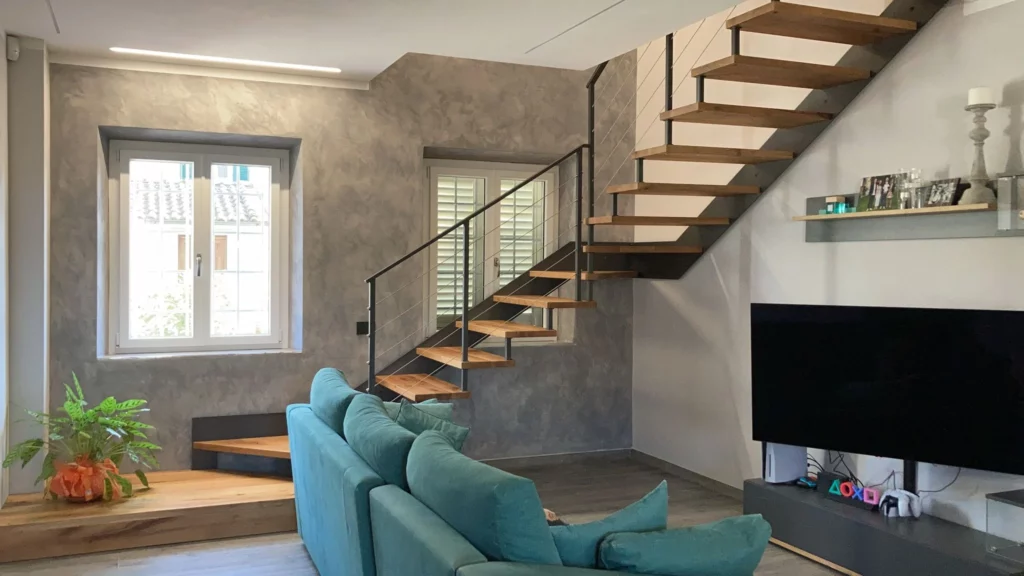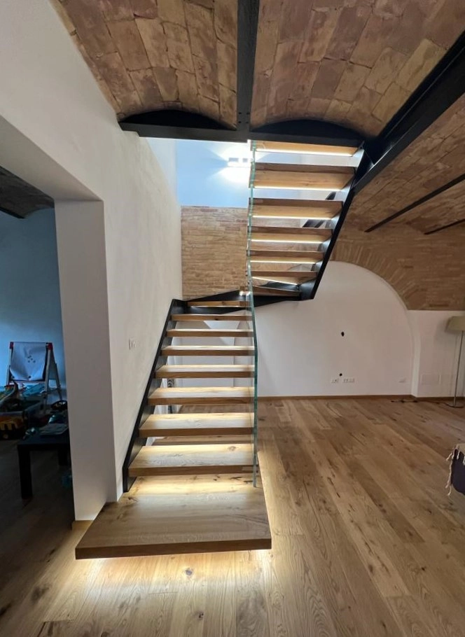 Produciamo da sempre scale autoportanti con una struttura robusta e stabile. Le nostre scale a giorno sono dotate di grande versatilità perché integrabili sia in ambienti moderni che in quelli classici. Ideali per interni senza necessità di pareti portanti, le scale a giorno di Bitozzi Scale rappresentano una soluzione perfetta per chi cerca uno stile contemporaneo senza rinunciare alla solidità. Dalle scale in legno a quelle in metallo o acciaio, ogni modello è personalizzato per rispondere alle esigenze del cliente e si adatta perfettamente agli spazi disponibili.